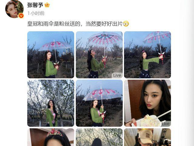 张馨予表示伞和皇冠都是粉丝送的,所以要好好出片。这意思是为了粉丝的礼物所以特意拍了这组春日大片。3月28日是张馨予39岁的生日,伞和皇冠应该是粉丝们准备的生日礼物。送礼物的粉丝看到自己的偶像带着自己的礼物特意拍了专属大片,内心得有多么的满足和感动。张馨予这波宠粉操作真的是绝了!