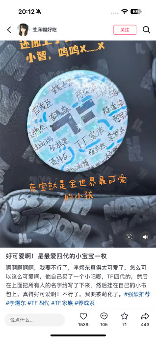 在偶像工业过度包装的语境下,这枚粗粝的手工徽章恰似清流。它延续了李煜东"将伤痕锻造成勋章"的生存哲学:曾将嘲讽标签"东不落"化为高会账号名,把普通话不足的缺陷转化为记忆点。徽章材质上的细微划痕,与生日纪录片《看风去》里巫溪古镇的斑驳砖墙遥相呼应——那是他骑着爷爷的电动车、为仓鼠之死流泪的素朴来处。当机械复制的舞台光鲜淹没真实,这枚亲手刻写的信物成为刺破虚妄的锚点,印证着养成系最珍贵的本真:在工业化偶像生产中倔强存留的人性皱褶。