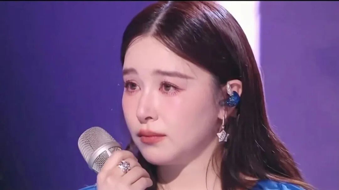 她多次泣不成声、气息紊乱导致跑调,最后在观众的“加油”声中才完成表演。