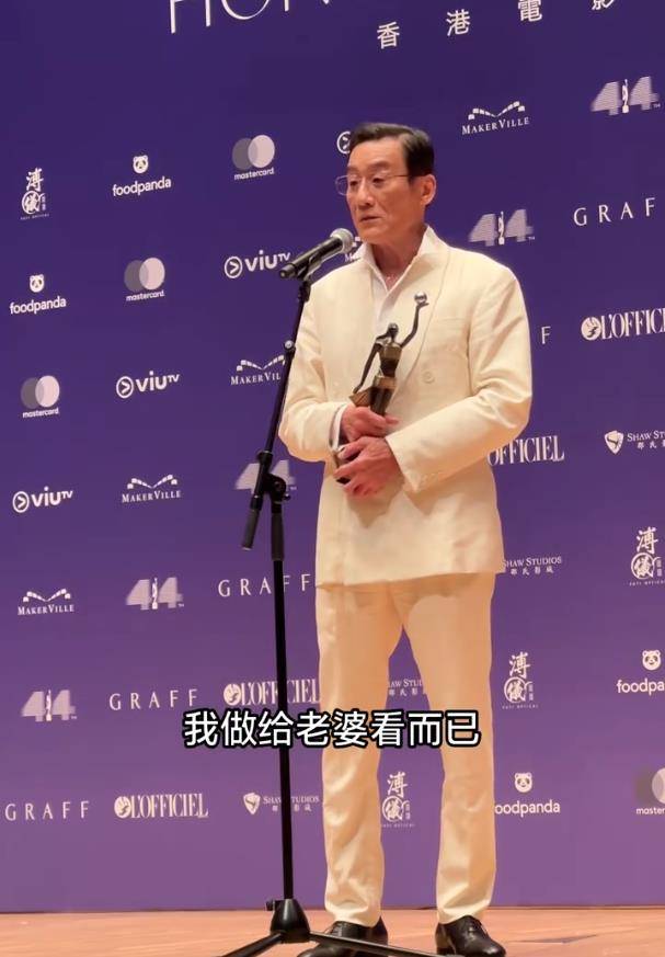 然而,比获奖更“出圈”的,是影帝台上台下的“反差萌”。在万众瞩目的领奖台上,梁家辉提及相伴44年的妻子江嘉年时,瞬间哽咽落泪,一句“谢谢她忍了我44年”的深情告白,引得全场动容,起立鼓掌。