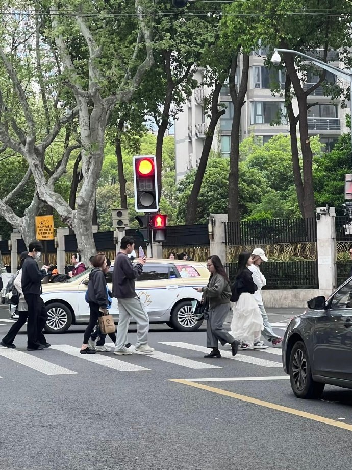 #上海街头偶遇朴宝剑#路人视角里的朴宝剑好随性,戴着口罩安安静静逛街,看到海报就停下来拍照,太真实了#朴宝剑街头和王安宇海报自拍#