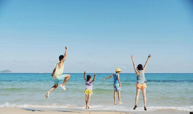 7月16日,孙俪发文:2021年7月的我们。并晒出一家四口度假照,四个人站在海滩上跳跃,画面温馨。