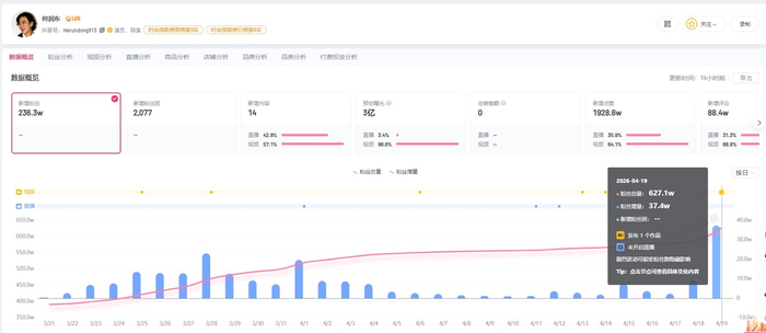 第三方数据显示,何润东亮相苏超赛场后涨粉46.6万,近30日涨粉236.3万。