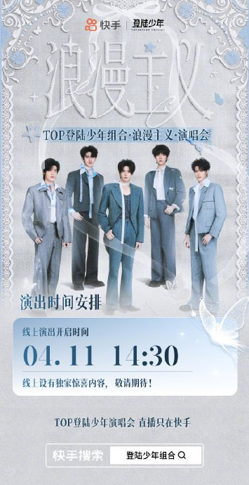 根据认证账号“登陆少年-FanClub”及“明星粉丝联盟”发布的权威信息,TOP组合为庆祝出道600天,将于2026年4月21日19:00在微博平台举行独家直播。直播以“热爱从未暂停,心动终成浪漫”为核心主题,突出成员与粉丝双向奔赴的情感联结,并紧扣“五位成员满分热爱 + 粉丝满分陪伴 = 六百分浪漫”的创意概念。