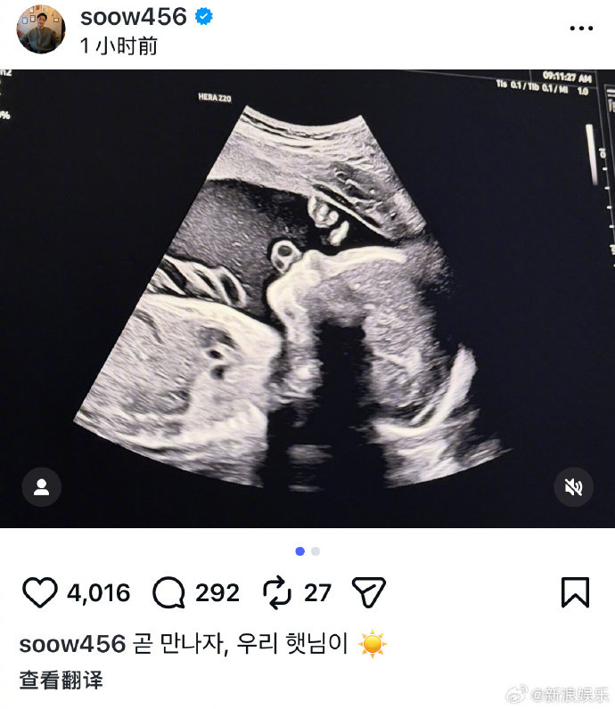 据4月21日报道,前FTISLAND吉他手宋承炫在社交平台甩出一张宝宝B超照,正式官宣妻子怀孕。他配文写道:“就快见面了,我们的小太阳。”照片里,黑白B超和清晰的3D彩超并列,胎儿轮廓已然可见,字里行间全是掩不住的期待和幸福。