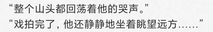 顾一野:“不对,他不可能牺牲的!”这里他还有一个失声的过渡,人在悲伤过度情绪上涌的时候会喘不过气来,突然哑了。他爆发失控之前还对老姜笑了一下,“不,老姜…老姜”那一笑是不愿相信突如其来的噩耗,是想从老姜那里找到认同,也是在安慰自己,不,不会的,排长不会就这么牺牲的,“医生!!!!”