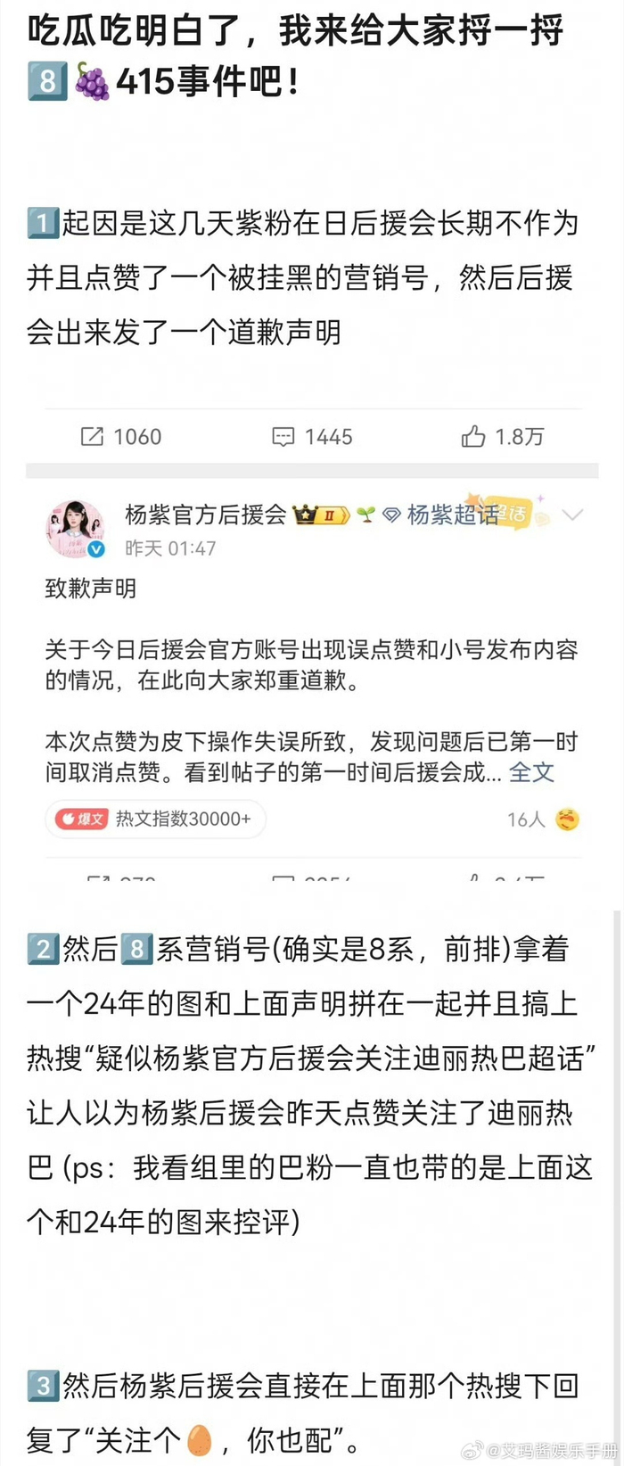 网友总结杨紫 迪丽热巴两家415事件,你觉得客观吗?