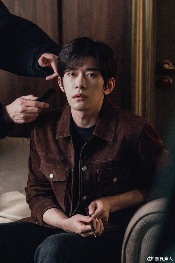 在拍摄的间隙,他手持剧本,认真研读,那专注的模样让人动容。工作人员为他整理头发时,他安静地坐着,眼神中透露出沉稳与淡定。那棱角分明的五官,在光影的交织下愈发立体,每一个轮廓都仿佛是精心雕琢的艺术品。