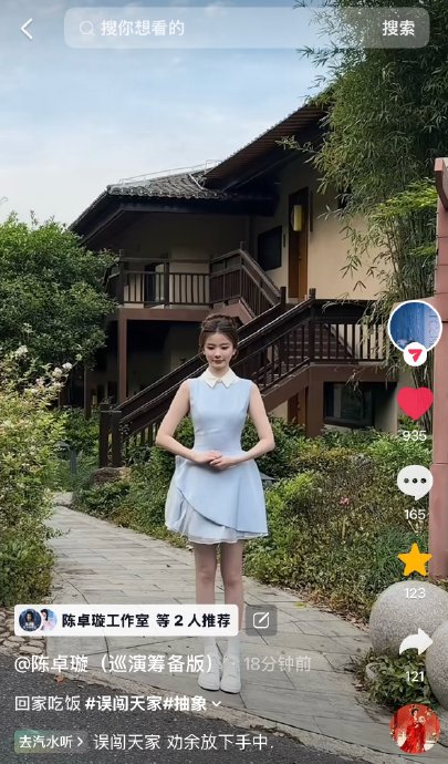 2026年4月20日,认证账号“陈卓璇的记忆储藏馆”在微博发布主题为#唱作人陈卓璇#的更新内容,正式推出《误闯天家》手势舞视频。该视频作为其个人音乐企划的衍生内容,旨在通过碎片化、互动性强的形式深化粉丝对歌曲《误闯天家》的记忆点。账号在文案中强调“完整播放视频,浏览五秒后互动推荐”,凸显平台算法逻辑下的传播策略——通过用户停留时长提升内容曝光权重,实现从粉丝圈层向大众视野的渗透。