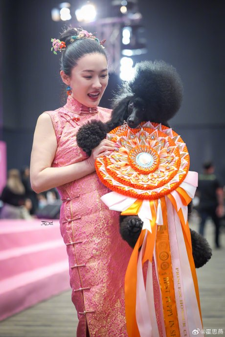 颁奖典礼上尤为动人的画面,是霍思燕手捧奖杯时望向家人的眼神。当她身着粉金刺绣旗袍站上冠军台,杜江第一时间抱起女儿示意她看向妈妈,嗯哼兴奋地跳起鼓掌;后台合影时,一家四口环绕着佩戴奖花的“霍蜜蜡”,三双手同时轻抚小狗的脊背。霍思燕在赛后微博特别致谢:“从训练到赛场,家人是托起梦想的手”,而杜江早在赛果揭晓时便连发动态,将妻子称为“让中国犬种闪耀世界的女神”。