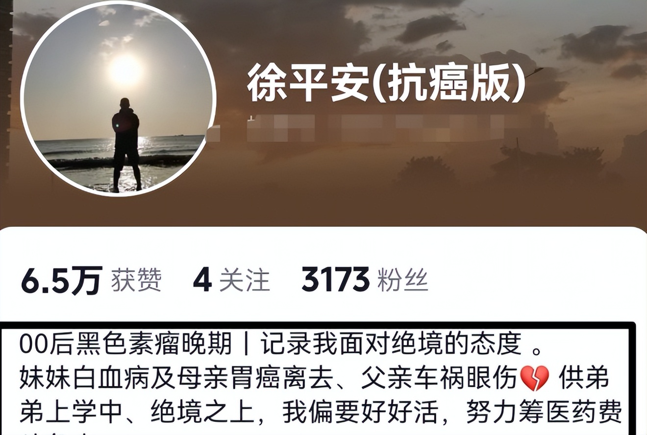 4月14日下午,无数网友的手机屏幕被一则悲痛消息刷屏,抗癌博主徐平安的个人账号上,家属发布的视频打破了所有关注者的期待,他们语气沉重地告知众人,这个始终笑着与命运对抗的大男孩,终究还是没能扛过病魔的纠缠,永远离开了这个让他饱经磨难却依旧眷恋的世界。
