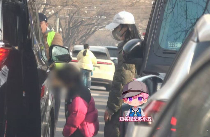 白百何拉着儿子上车时的画面,当天白百何素颜出镜。穿一件宽松的咸菜色羽绒服,搭配白色棒球帽,还戴着口罩。