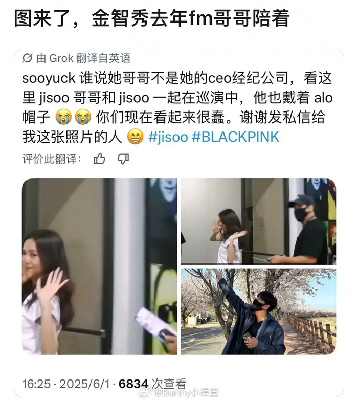 网友发现去年金智秀哥哥陪同金智秀一起巡演,并且哥哥常常穿金智秀代言的衣服品牌……这是?