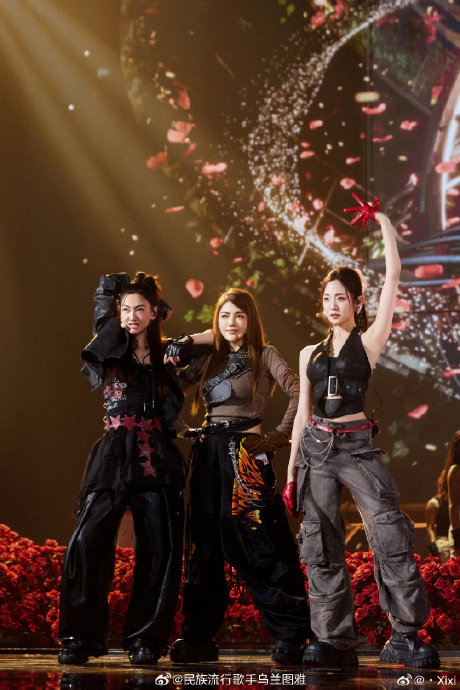 - 她用蒙古族舞蹈的顿挫感呼应摇滚节奏,摔鞭动作融入编舞;