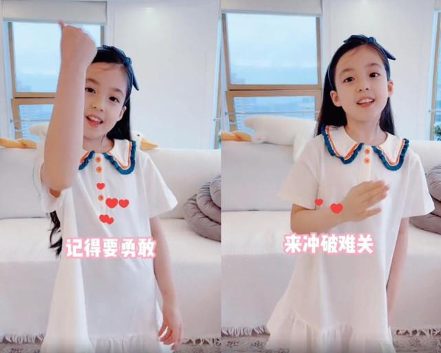 小泡芙对镜跳起爸爸新单曲《记得要勇敢》的手势舞,动作可爱,落落大方,宛如降落在人间的美丽公主。