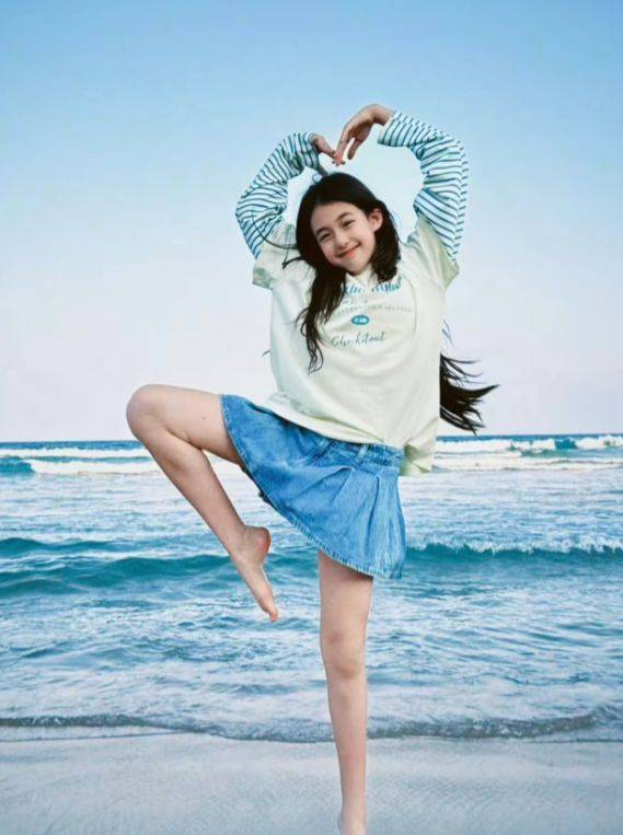 3月25日,刘畊宏在社交平台上分享了女儿小泡芙的最新照片,一时间引发了全网的热烈关注。照片中的小泡芙,已不再是那个带着懵懂神情的稚嫩小女孩,而是一个长发垂至腰际、神采飞扬的少女。她身穿长袖T恤,搭配俏皮的牛仔短裙,在海边自由伸展、随意拍照,每一个动作都充满了自然的韵律。她的眉眼间透着阳光般的灵动与纯真,那种不加掺杂的可爱,让人忍不住感慨:这才是青春最真实、最动人的模样。