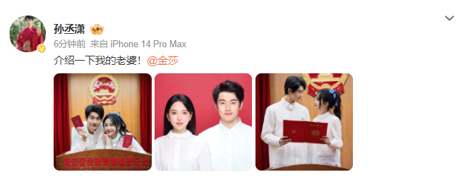 随后,孙丞潇发文:“介绍一下我的老婆!”