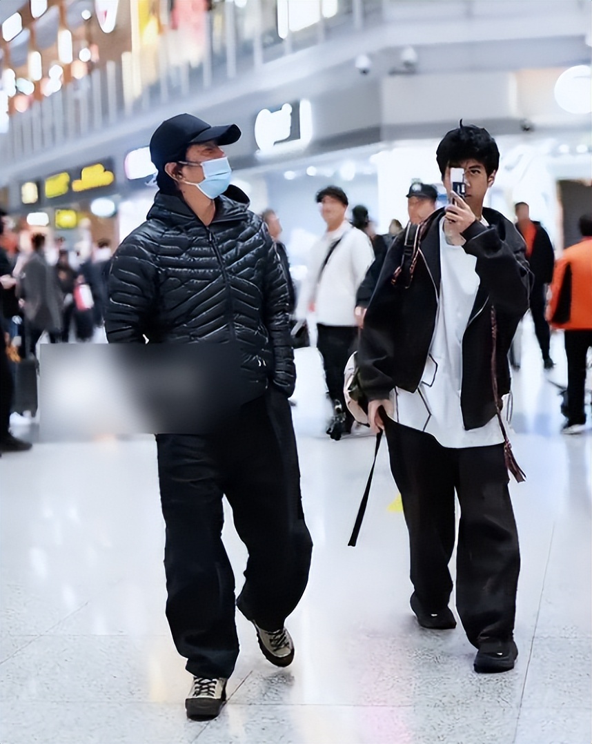 2026年4月9日,于北京机场候机大厅,有路人捕捉到郑钧与儿子Jagger一同出行的画面。