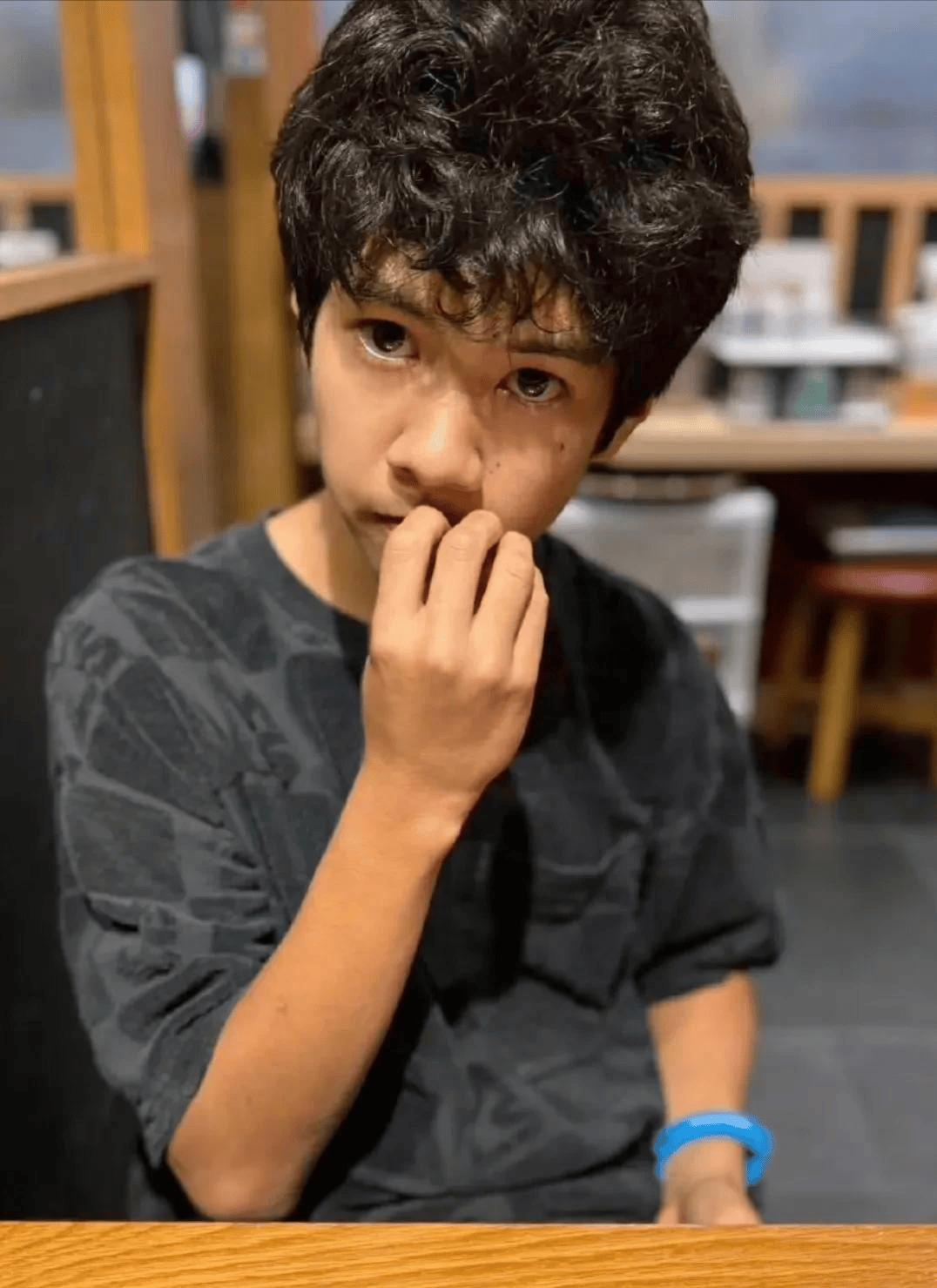 可如今15岁的他,褪去了小时候的婴儿肥,皮肤变得黝黑,脸上还长出了淡淡的胡茬,看着比实际年龄成熟了不少。