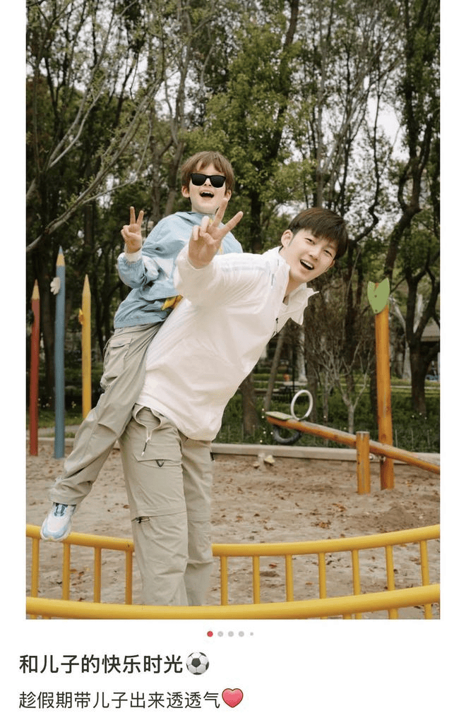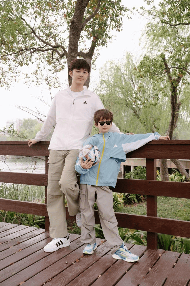 近日,董力在社交平台晒出一组假期与儿子逛公园的合照,瞬间将公众的记忆拉回现实。照片中,正值初春四月,阳光安暖,微风不燥,嫩绿的枝丫在蓝天下舒展,清浅的河水静静流淌。董力与尤利斯站在木桥边,父子俩身着同款外套——父亲选择干净的纯白色,尽显清爽;儿子则是蓝白配色,更添少年感。面对镜头,两人露出惬意的微笑,画面温馨而美好。