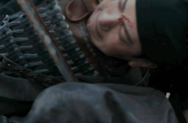 在两军对峙的危急时刻,他义无反顾冲上去替满屋挡下致命一击,颤抖的嘴角、望向天空的眼神,他满脸的痛苦却把少年的孤勇与不舍演绎得淋漓尽致。