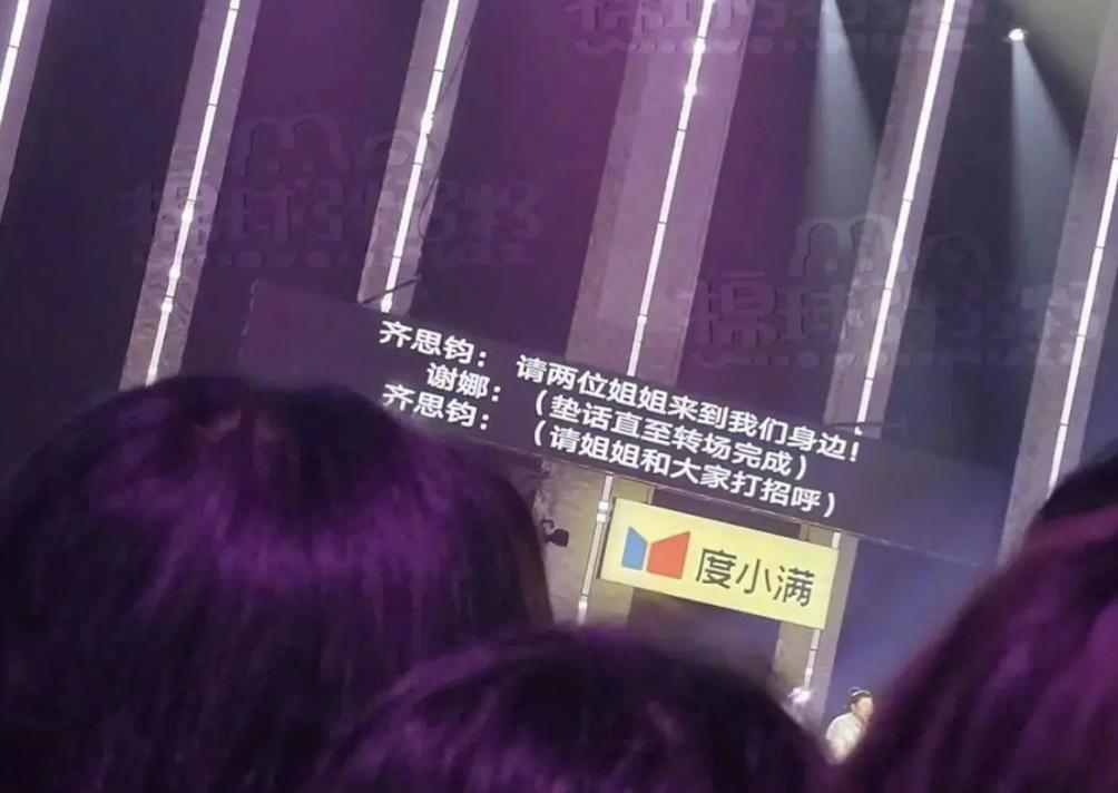 日前,有网友晒出一张浪姐现场提词器的图片,两位主持人的“待遇”差别很大,齐思钧有明确的话术,给谢娜的内容却是“垫话直至转场完成”。