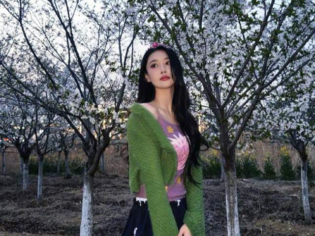 粉丝们也是拿张馨予当小公主呀,这伞的把手和皇冠都是小公主专属呀。不过看张馨予这状态也是小公主的感觉了,身穿绿色小开衫搭配紫色内搭,黑色绣花小短裙,整一套很有春日的气息。站在樱花下,人比花美在这一刻具象化了。