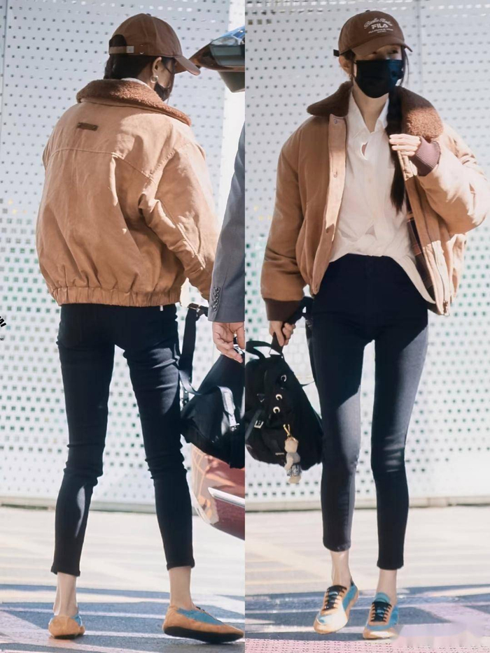杨幂今日机场私服,现在清一色的阔腿裤穿搭,好久不见的紧身牛仔裤,好身材穿紧身牛仔真的感觉好清爽利落!