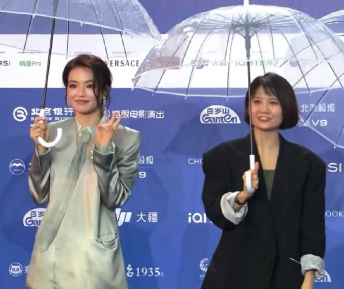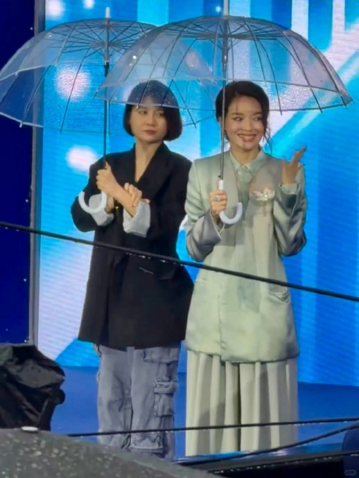舒淇的 新中式淡绿绸缎西装(Armani Prive高定)彰显从容大气,邵艺辉利落简约的着装风格则传递新生代锋芒。两人雨中并肩的画面被网友誉为 “高级感碰撞”,其视觉和谐暗喻了女性叙事 多元包容 的可能性。公众对二人 “合作期待” 的呼声,更折射市场对女性创作者联合的迫切需求。