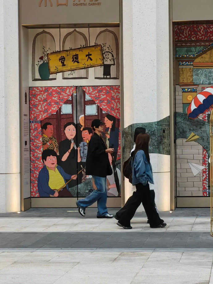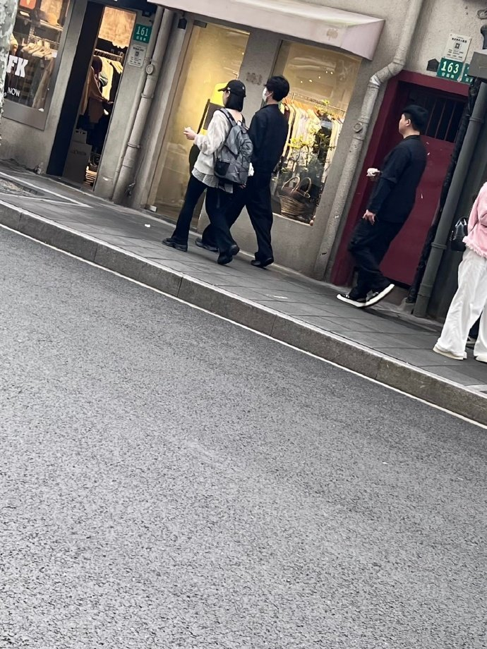 #上海街头偶遇朴宝剑#路人视角里的朴宝剑好随性,戴着口罩安安静静逛街,看到海报就停下来拍照,太真实了#朴宝剑街头和王安宇海报自拍#