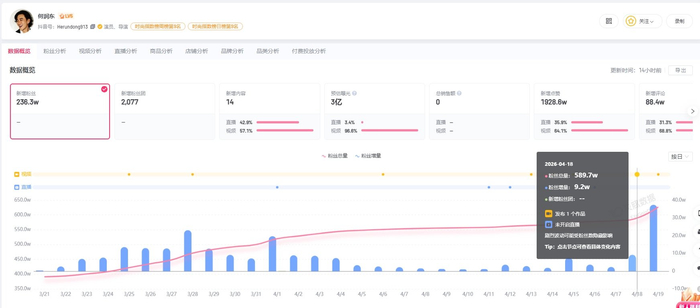 第三方数据显示,何润东亮相苏超赛场后涨粉46.6万,近30日涨粉236.3万。