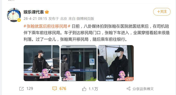 事件起因于当日,有八卦媒体拍到张翰身着黑色服装,先后现身医院、移民局及银行,行程低调。画面一出,部分网友便将其与“事业发展受限”联系起来,猜测其可能准备移民海外。