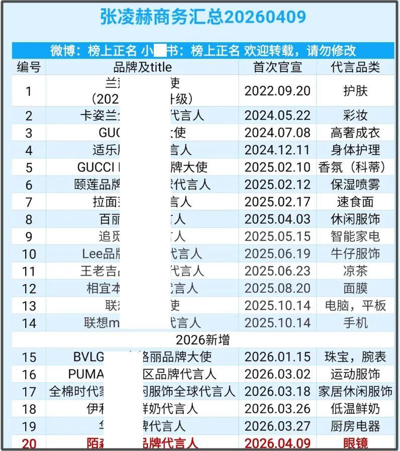毕竟号称是2026年大爆剧的《逐玉》男主张凌赫,又是宣传又是跑综艺跑活动,半年内也只新增了6个商务,当然了,张凌赫的title会高一些。