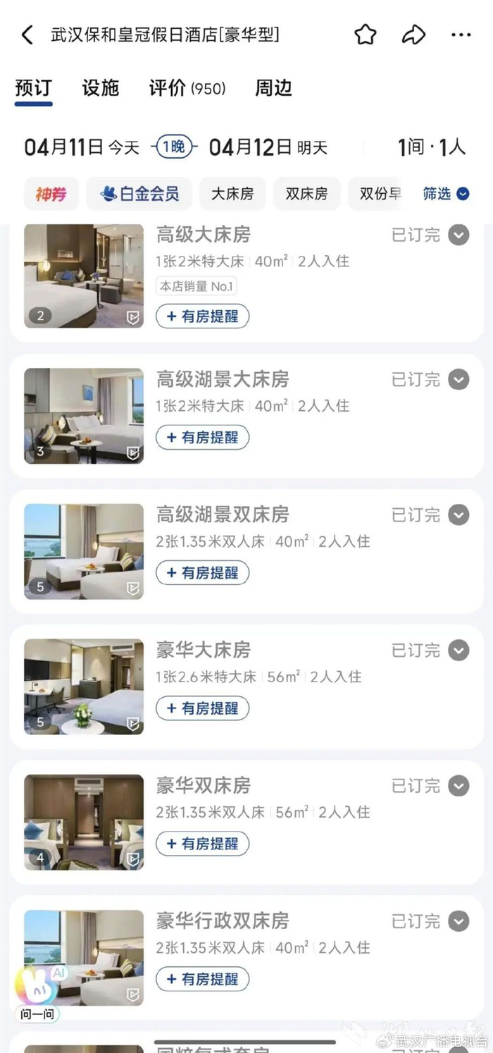 为接住演艺流量,武汉体育中心周边多家酒店已开启“宠粉”模式。毗邻武汉体育中心的武汉保和皇冠假日酒店,步行至场馆仅需10分钟,酒店大堂电视循环播放谢霆锋的经典歌曲,工作人员得知入住客人为歌迷时,还会在房间内放置谢霆锋明信片。酒店介绍,相比去年同期周末,该酒店入住率同比上涨38%,收益同比增长95%。