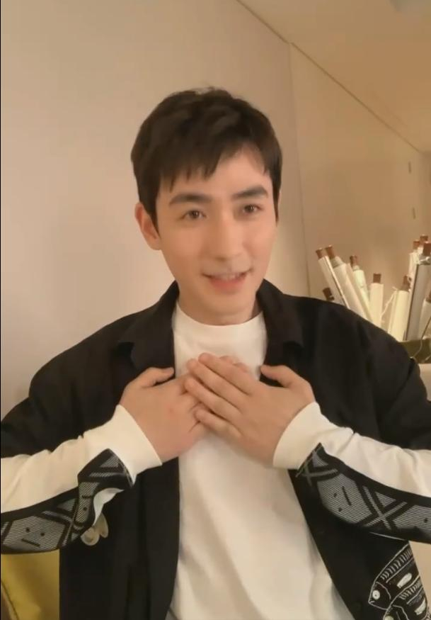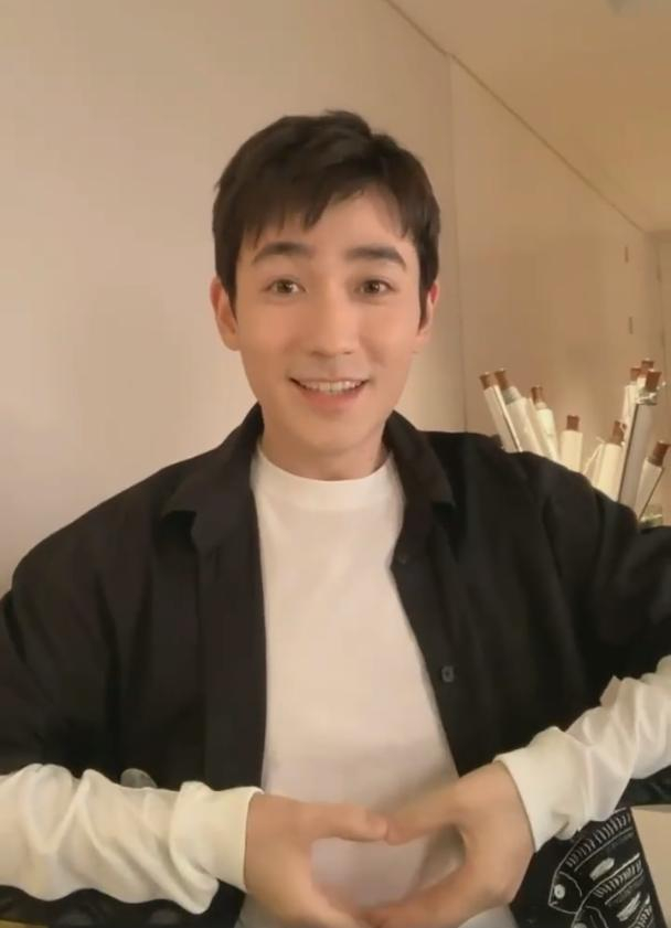 最后,他还用双手比划出一个爱心的手势,并且微笑着看向屏幕,不用说都知道,他这个爱心是送给屏幕前的粉丝们的,粉丝们都直呼“爱了,爱了”。