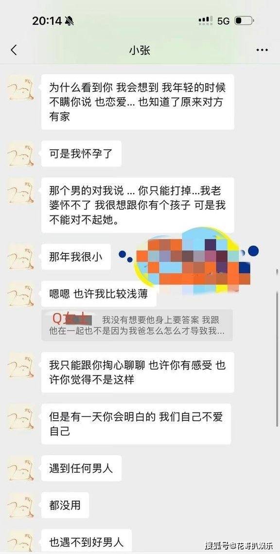 按照Q女士的说法,当初事发之后张婉婷想办法联系过她,也不知道出于什么目的,就开始自曝黑历史了,她说自己年轻时也曾爱上过一个有妇之夫,甚至为对方怀过孕,但最终被要求打掉孩子,然而最后她还是退出了。她试图用这段经历告诉Q女士,你经历过的我也经历过,我懂你,但你也该懂我,退出吧。