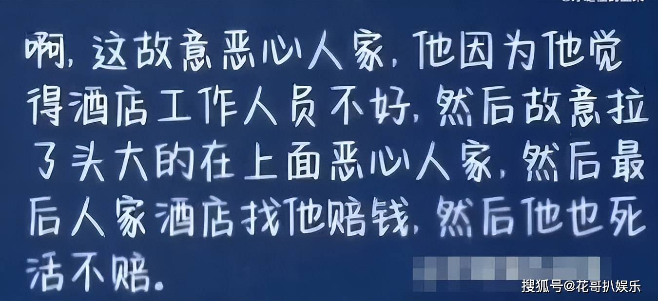 Q女士还说,有一个艺人,因为对酒店的服务不满意,可能是出于报复,他故意在酒店的床上拉屎,以此来泄愤。难以想象当酒店工作人员打扫房间时,看到那一幕,内心该是何等的崩溃和震惊。这已经不是耍大牌了,这简直是反人类的行为。更过分的是,当酒店方面联系他,要求他进行赔偿时,他居然拒不赔偿,一副你能拿我怎么样的嚣张态度。