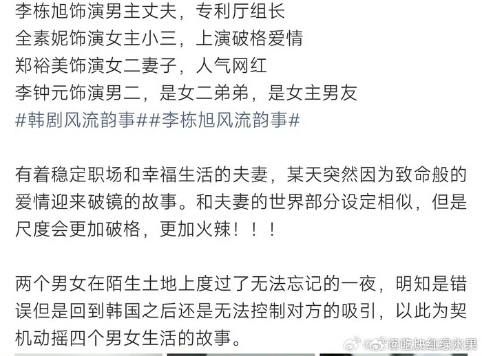 1. **“爱情陷阱师”**:这剧看起来像是一场四角恋的极限挑战,男主和女二的感情线再加上弟弟和小三的关系,真是让人捧腹不已! ,2. **“李栋旭的韩剧天花板”**:听说李栋旭对这个剧本真的很感兴趣,不管是不是大片,他都想出演,真是演技过瘾! ,3. **“夫妻世界里的三角论”**:女主是小三,男二是弟弟,男主和女二是夫妻,难怪李栋旭说这剧复杂度高,演员真的需要有多强的演技才能扮演! ,4. **“亲弟弟的烦恼”**:女二的弟弟和小三在一起,真是让人 feels 被干得太多了,难怪李栋旭想来衔接这个角色! ,5. **“四角恋的极限”**:男主、女二、女主和男二的关系纠葛,简直是演员的AI训练地狱! ,6. **“戏剧冲突派的狂欢”**:这剧看起来像是一场永不落幕的戏剧冲突,李栋旭能否承受这么复杂的角色? ,7. **“爱情四重奏”**:男主和女二的感情线,加上弟弟和小三的关系,真是让人忍不住想给他们一些建议! ,8. **“亲情与爱情的较量”**:女二和弟弟之间的感情,真的有点让人心疼,希望他们能好好解决! ,9. **“复杂度爆表”**:这剧的剧本真是太过复杂了,四个角色的关系错综复杂,演员的演技都得台阶上! ,10. **“吃瓜的最高境界”**:这剧看起来真的太有看点了,难怪李栋旭对它这么感兴趣,期待它能给我们带来一场盛宴!