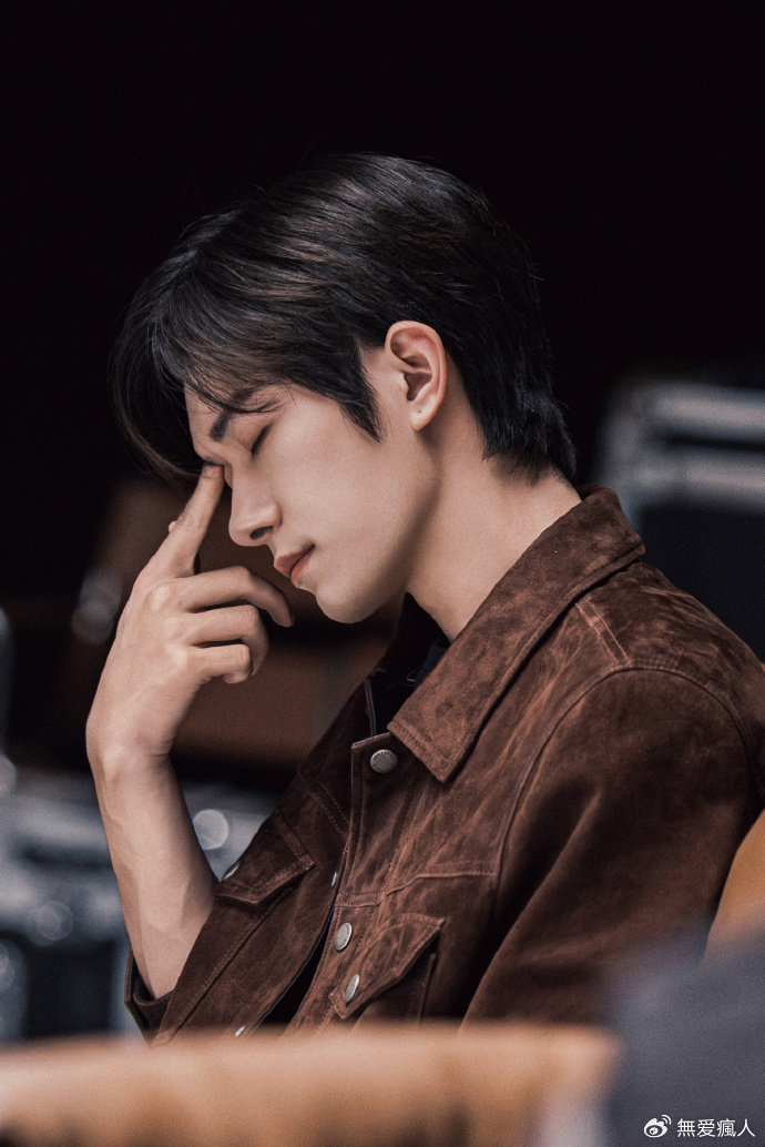在拍摄的间隙,他手持剧本,认真研读,那专注的模样让人动容。工作人员为他整理头发时,他安静地坐着,眼神中透露出沉稳与淡定。那棱角分明的五官,在光影的交织下愈发立体,每一个轮廓都仿佛是精心雕琢的艺术品。