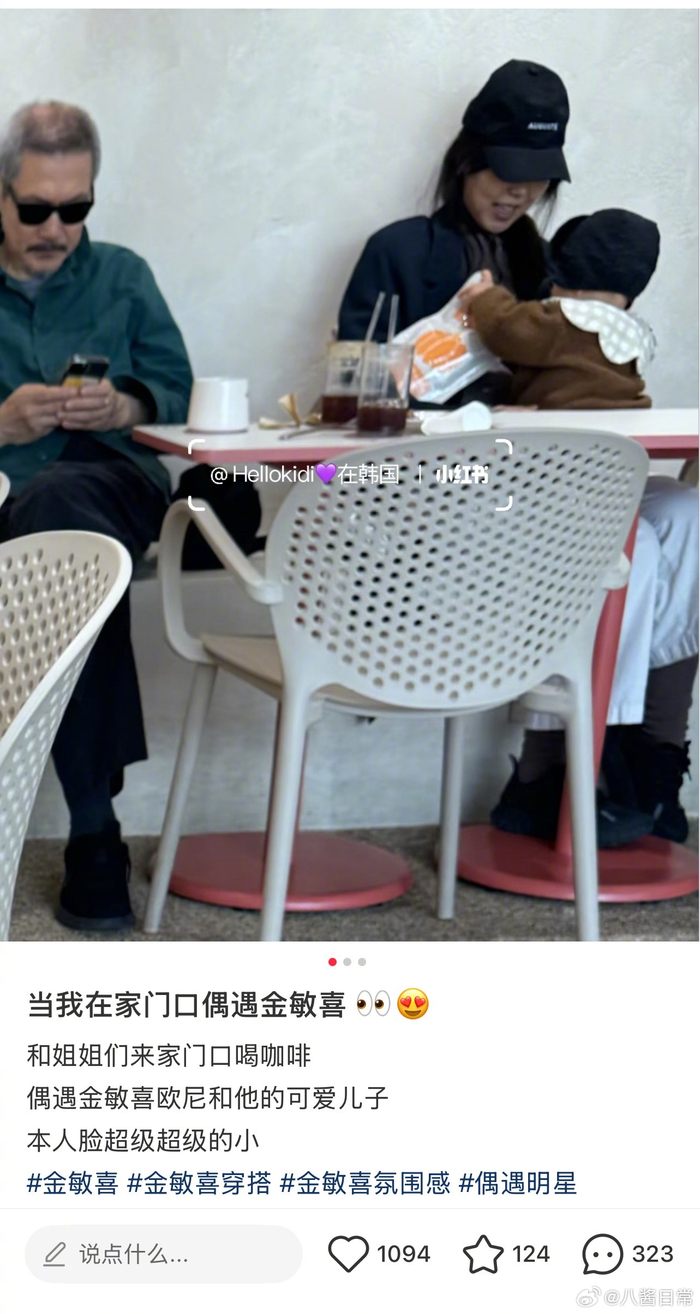 网友偶遇洪尚秀、金敏喜咖啡店带娃