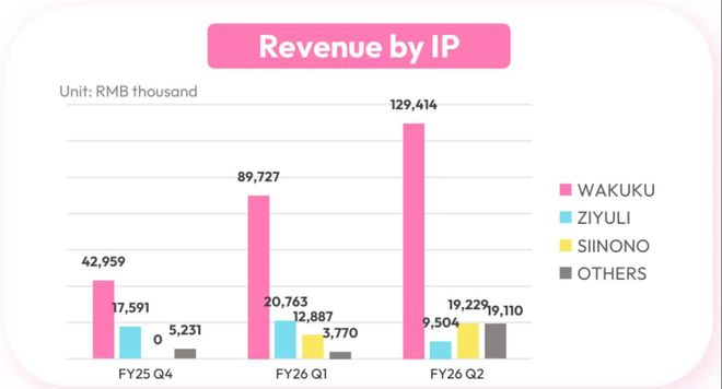 雷报还注意到,上述运营扩张的背后,IP矩阵也在持续扩张。“小嗷”获得顶级资源助推的同时,HERE奇梦岛旗下的哇库库WAKUKU、又梨ZIYULI、芙哩哩FUNII、赛诺诺SiiNONO等其他IP系列依然在按自己的节奏推新、运营和拓展粉丝。