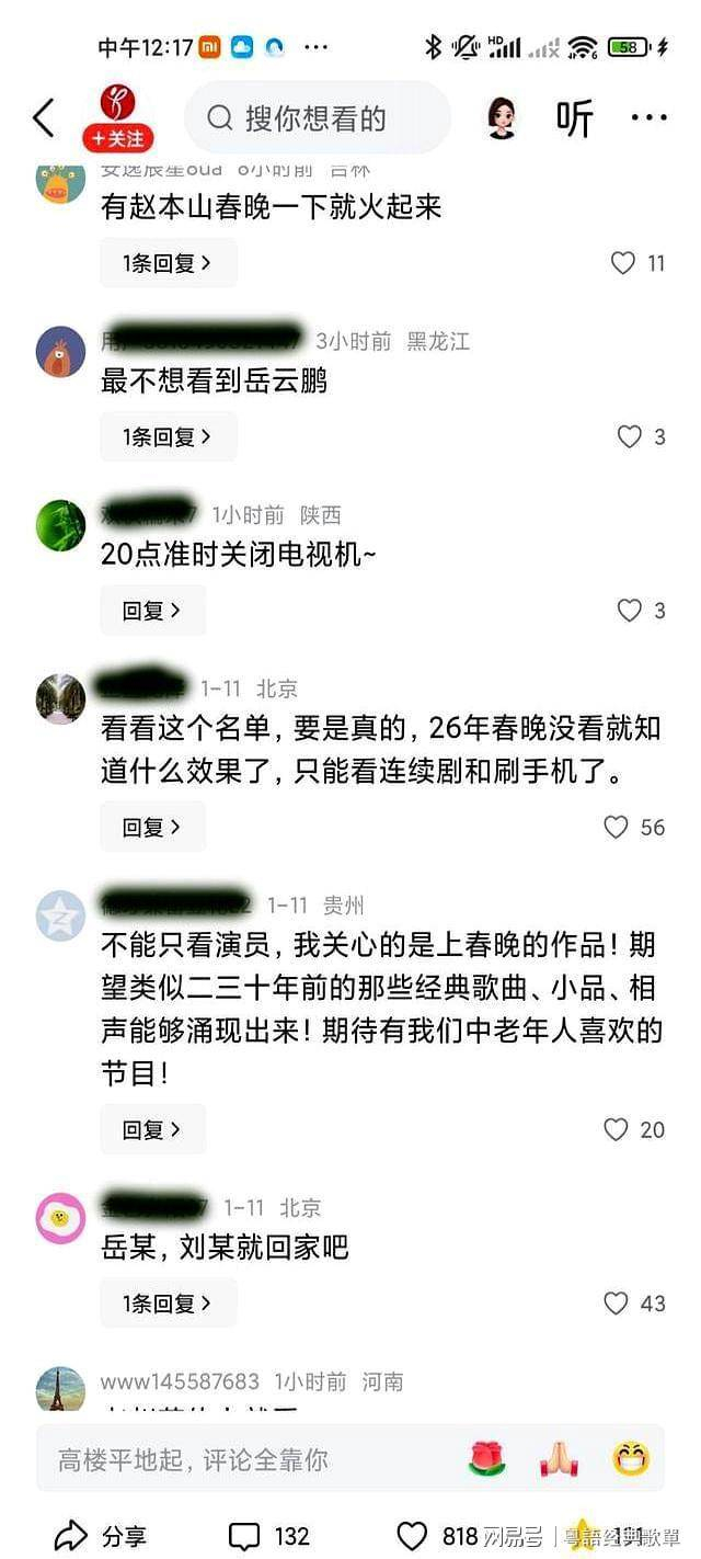 1. **网友A**:刘宇宁这人真有眼光,能和春晚这样传统节目做合计,未来肯定能给观众带来新鲜感,老观众们别担心,春晚永远是家人团圆的精神港湾!,2. **网友B**:春晚的节目风格终于有点变化了,年轻演员的加入让节目焕发活力,虽然老观众们可能有点不适应,但新人真的很有潜力,看他们表现下去,春晚会越来越好!,3. **网友C**:刘宇宁现身春晚,真是给爷爷打call了!年轻演员的加入给节目注入了新的活力,虽然老观众们可能觉得不一样,但春晚本就不是只为一部分人,而是全家团圆的时刻!,4. **网友D**:新生代演员的加入确实让春晚更有看点,年轻观众会喜欢这种现代感强的节目安排,不过老观众们还是认准老版的春晚,毕竟哪一年能有那种温情脉脉的感觉?,5. **网友E**:春晚的彩排已经开始,年轻演员的表现真的很有看点,刘宇宁的加入更是给观众带来了更多期待,希望春晚能在传统和现代之间找到平衡,让所有观众都能感受到年味。,6. **网友F**:年轻演员的加入虽然让春晚看起来更年轻,但老观众们还是希望能看到更多熟悉的面孔,希望春晚能在新旧交融中,既能吸引年轻人,又能温暖老人的心。,7. **网友G**:刘宇宁现身春晚,年轻演员的加入确实让节目更有活力,不过老观众们还是希望春晚能保持那份熟悉的温情,毕竟春节是团圆的时刻,节目也应该传递温暖。,8. **网友H**:春晚的演员阵容每年都有变,年轻演员的加入让节目看起来更有现代感,但老观众们还是希望能看到熟悉的脸,希望春晚能在传统和现代之间找到平衡,让所有人都能感受到节日的温暖。,9. **网友I**:年轻演员的加入虽然让春晚更有看点,但老观众们还是觉得节目少了点老味,希望春晚能在新旧之间找到平衡,让每个观众都能感受到节日的喜悦和温情。,10. **网友J**:刘宇宁现身春晚,年轻演员的加入让节目更有活力,虽然老观众们可能有点不适应,但春晚本就不是只为一部分人,而是全家团圆的时刻,希望节目能继续温暖每个家庭的心。1. **吃瓜小萌**:刘宇宁现身春晚彩排,年轻演员阵容真是太给力了!但中老年观众们的失落脸,我都能看清,哈哈哈!,2. **春晚党**:春晚新演员太有眼光了,刘宇宁加盟直接拉满!不过老观众们的“无语”表情也太真实了吧!,3. **吃瓜达人**:彩排开始啦,年轻小鲜肉们的表现简直惊艳,老观众们的“不服”气场全开,笑死了!,4. **春晚小仙**:新演员的加入果然带来活力,春晚节目更有现代感了!但老观众们的怀念情绪也太强了吧!,5. **吃瓜狂人**:刘宇宁的表现怎么样?我看老观众们的脸都在流泪了,春晚节目真的要有新旧交融的感觉!,6. **春晚宝宝**:彩排画面里,年轻演员的活力满满,老观众们的失落表情也太可爱了,太有画面感了!,7. **吃瓜小白**:春晚的演员阵容越来越年轻,老观众们的“无奈”太明显了,但新演员们的表现也太有眼光了!,8. **春晚小萌**:新演员的加入让春晚更有年轻化的感觉,但老观众们的怀念情绪也太强了,节目真的要怎么平衡呢?,9. **吃瓜大师**:刘宇宁现身彩排,年轻演员们的表现简直让人期待,但老观众们的“无语”表情也太有趣了!,10. **春晚老友**:春晚节目越来越年轻,老观众们的“不服”气场全开,新演员们的表现也太有眼光了,笑死了!