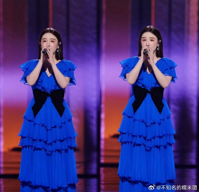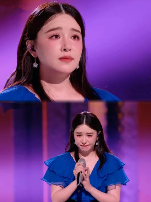 毫无唱跳经验的她,从抗拒手势舞到睡前默记"饭撒"动作,反复练习"小狗耳朵""比心"等互动。初舞台全开麦演唱《爱的代价》时因情绪崩溃哽咽跑调,却拒绝评委重唱提议,坚持"尊重规则公平"。二公舞台以蓝黄条纹衫双马尾造型逆袭,被赞"甜妹糯米糍",从垫底到显著进步的蜕变被观众视为"养成系励志样本"。