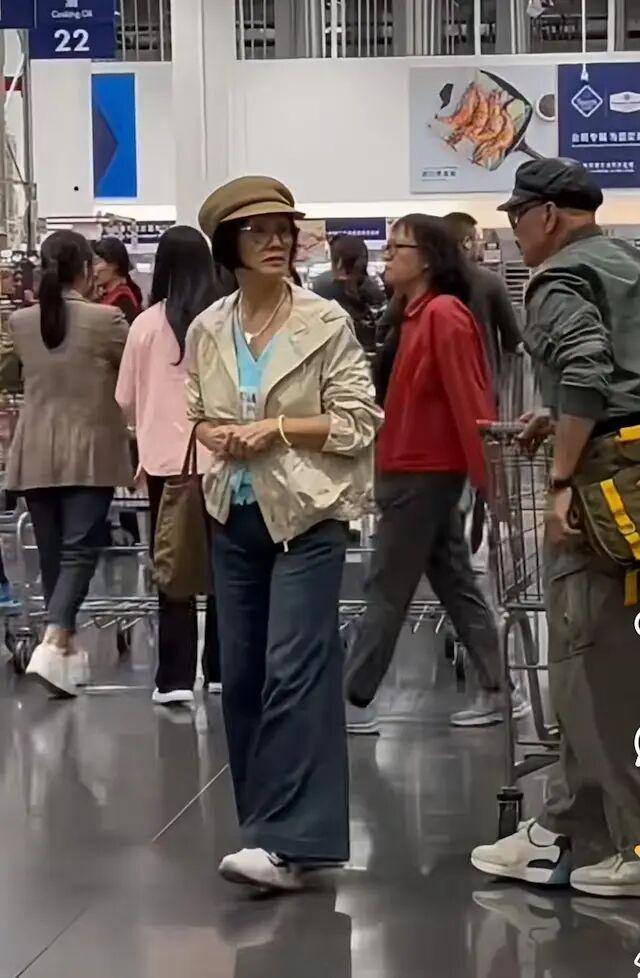 从网友分享的图片看到71岁的韩马利戴上帽子,打扮随意又新潮,独自逛超市。韩马利先是专注地四处张望,之后突然转身上前拿取货品。