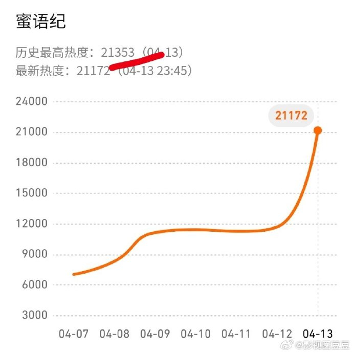 开播1小时内,腾讯视频热度值从19000飙升突破20000,最终定格在21353;爱奇艺热度突破4860。双平台均以“独播剧待遇”力推,开播12小时站内总流量破亿,其中#蜜语纪#主话题阅读量达7000万,#朱珠许蜜语#等角色话题阅读量破千万。