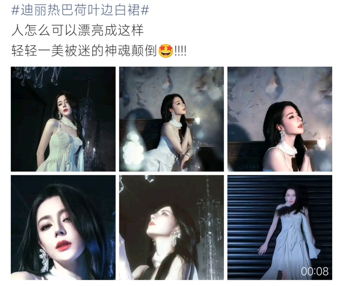 迪丽热巴荷叶边白裙氛围感拉满,清冷又高贵,美得像月光下的公主