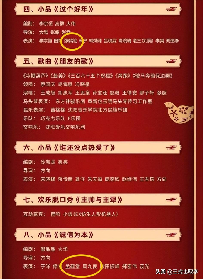 千呼万唤,终于揭晓——辽视春晚的节目单终于公布了。但仔细一看,这份节目单与大众的期待略有不同。以往,辽视春晚因语言类节目数量丰富而备受网友喜爱与期待,笑声和机智的碰撞总能让人津津乐道。然而,今年唯一的一组相声却由冯巩和潘斌龙担当,德云社的相声演员们却意外转行,不说相声,而是尝试唱歌与表演小品。