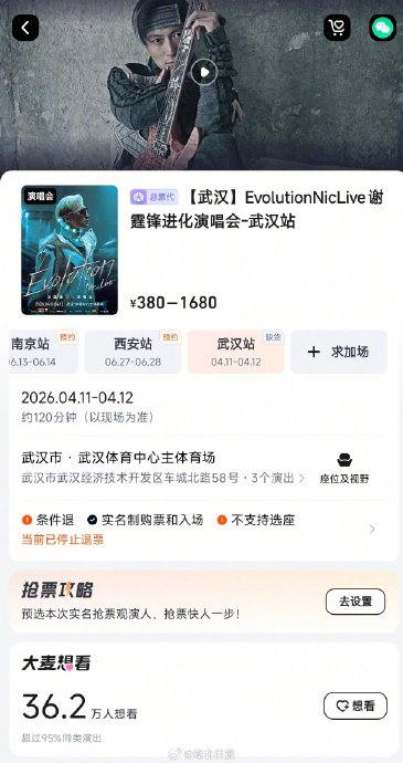 2026年4月11日至12日的武汉雨夜,谢霆锋在露天体育场用浸透汗水的舞台与三万人的青春呐喊,共同淬炼出一场名为“Evolution”的摇滚朝圣。