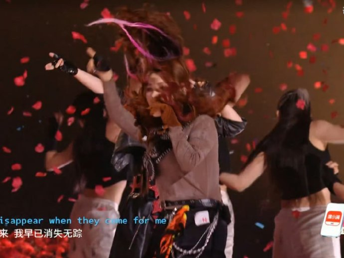 - 她用蒙古族舞蹈的顿挫感呼应摇滚节奏,摔鞭动作融入编舞;