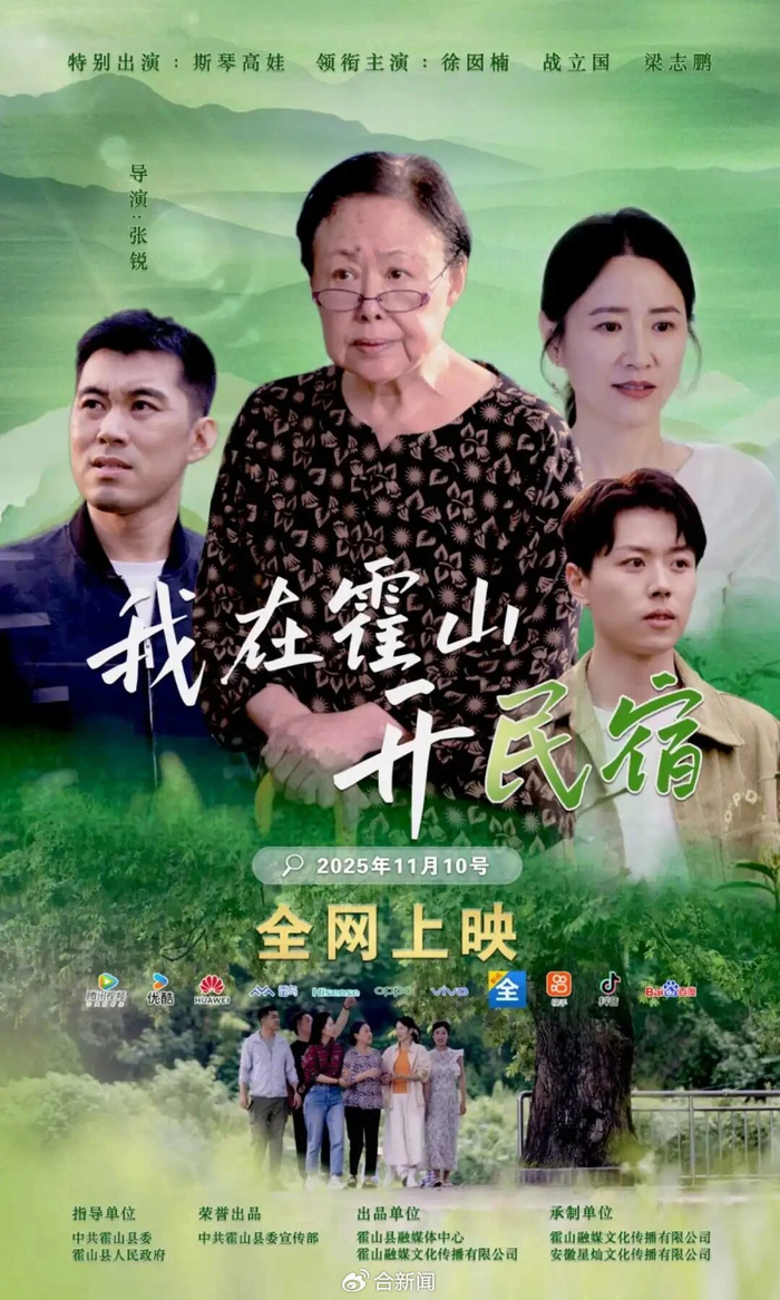 《我在霍山开民宿》由安徽省影视家协会副主席、青年导演张锐导演,知名表演艺术家斯琴高娃、青年演员徐囡楠、战立国倾情出演。该剧以一对在霍山外出创业的夫妻返回家乡创办民宿为主线,围绕他们与来自各地、不同年龄和身份的游客之间的互动展开,通过一系列诙谐搞笑又充满温情的故事,串联起霍山的文旅融合、民宿经济和乡土风情,既展现了主人公克服困难、建设家乡的热忱,又以轻松幽默的笔触描绘了乡村振兴背景下城乡文化的碰撞与交融。该剧深度融入霍山独特的自然风光与物产资源,不止于讲述一个温情故事,更通过微短剧这一轻量化、年轻化的载体,展现了霍山的生态资源、红色文化与乡村振兴的成果。